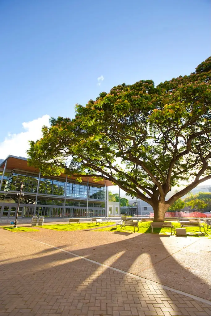 The University of Hawai’i at Mānoa campus is frequently celebrated in national and international publications, primarily for its natural beauty, unique architecture, and status as an accredited arboretum. Frequently described as “welcoming” and “diverse,” the campus offers a multicultural global experience. The campus is described as a prime example of “Tropical Modernism,” where structures are designed to interact with the island’s breezes and natural light rather than sealing them out.
